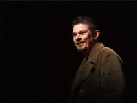 klipp från pjäsen "Logosfält" där M.Hector gjort de videoverk som ses bakom skådespelarna